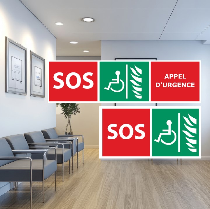 Gamme LEF : c’est un jeu de 2 stickers (4 cm x 4 cm) qui se positionnent à côté du bouton d’appel des LEDIA et LEDIEA